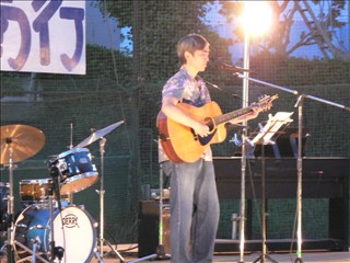 写真は、先日8月15日に行われました野外ライブin南行徳。たまたま客席にいらっしゃいました知人の方が撮ってくださったものです。さとうきび畑、初恋(村下孝蔵)、少年時代(井上陽水)と3曲歌いました。
