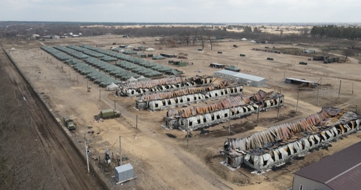 Последствия ночных работы ВКС России по позициям ВСУ на горе Карачун в Славянске.