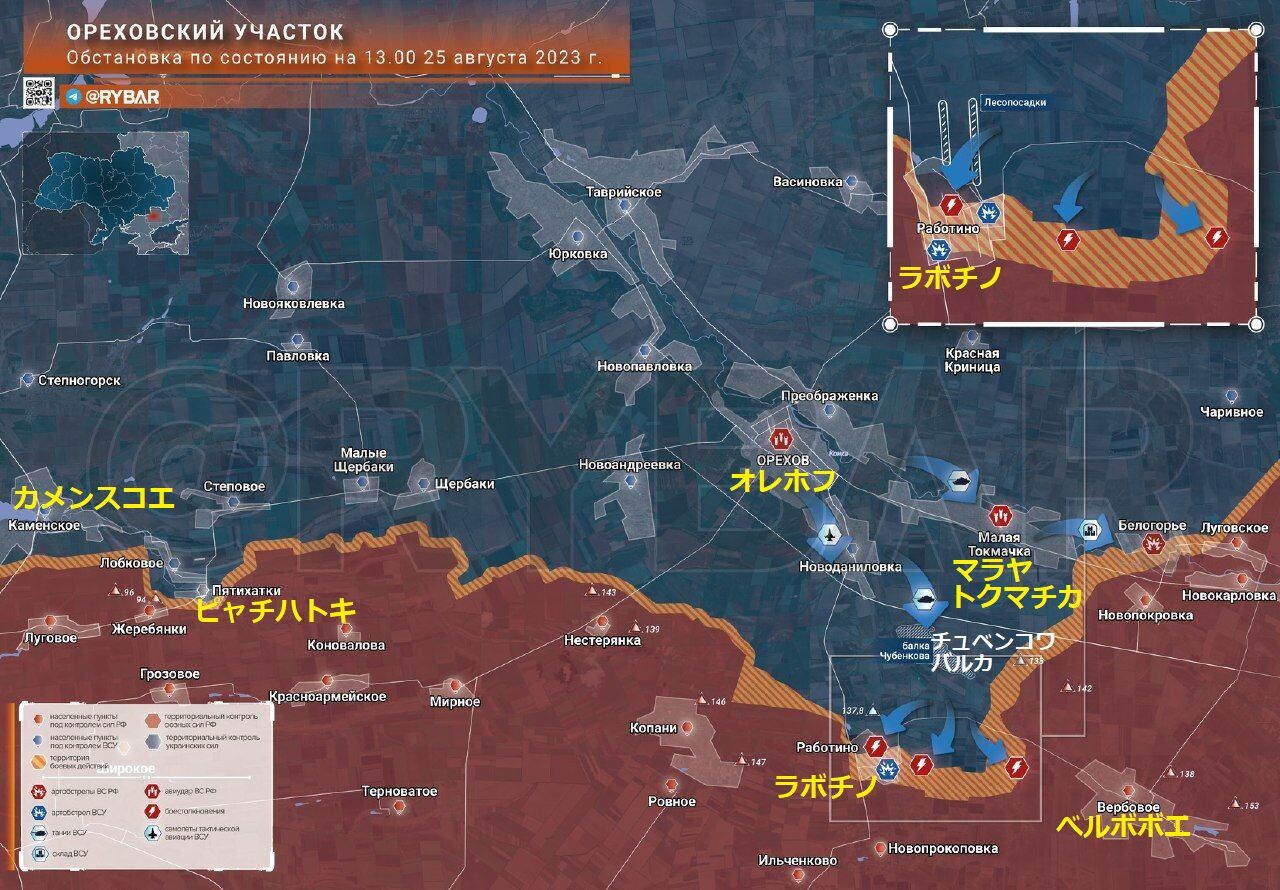 オレホフ地区と並び毎日のように同じ図面が出て来て興味のない方には退屈かもしれませんが、ウクライナ軍はこの2つのエリアにこの先1か月で全力を投入しようとしており、これを受け潰すことに成功した時がウクライナ軍の終わりの始まり・・・戦局の転換点となります。重要局面に差し掛かっています。