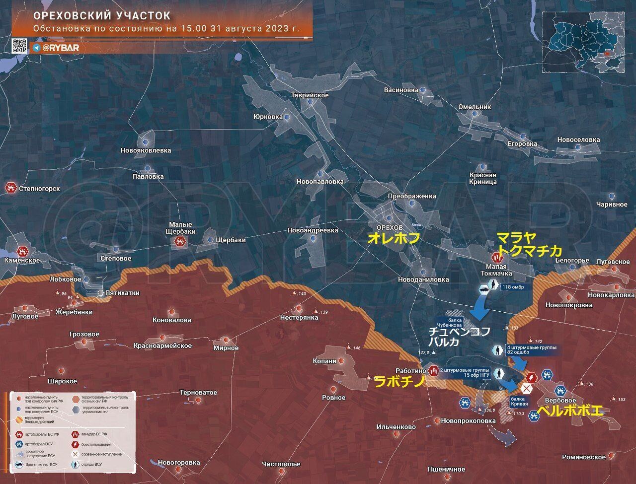 また、ウクライナ軍編隊は第31機械化旅団を増援するため、動員された80名をプリユトノエ方面のバルカ・グルーシェバヤ地域に移送しました。第31旅団の部隊も村の北東の陣地を占め、攻撃に備えています。