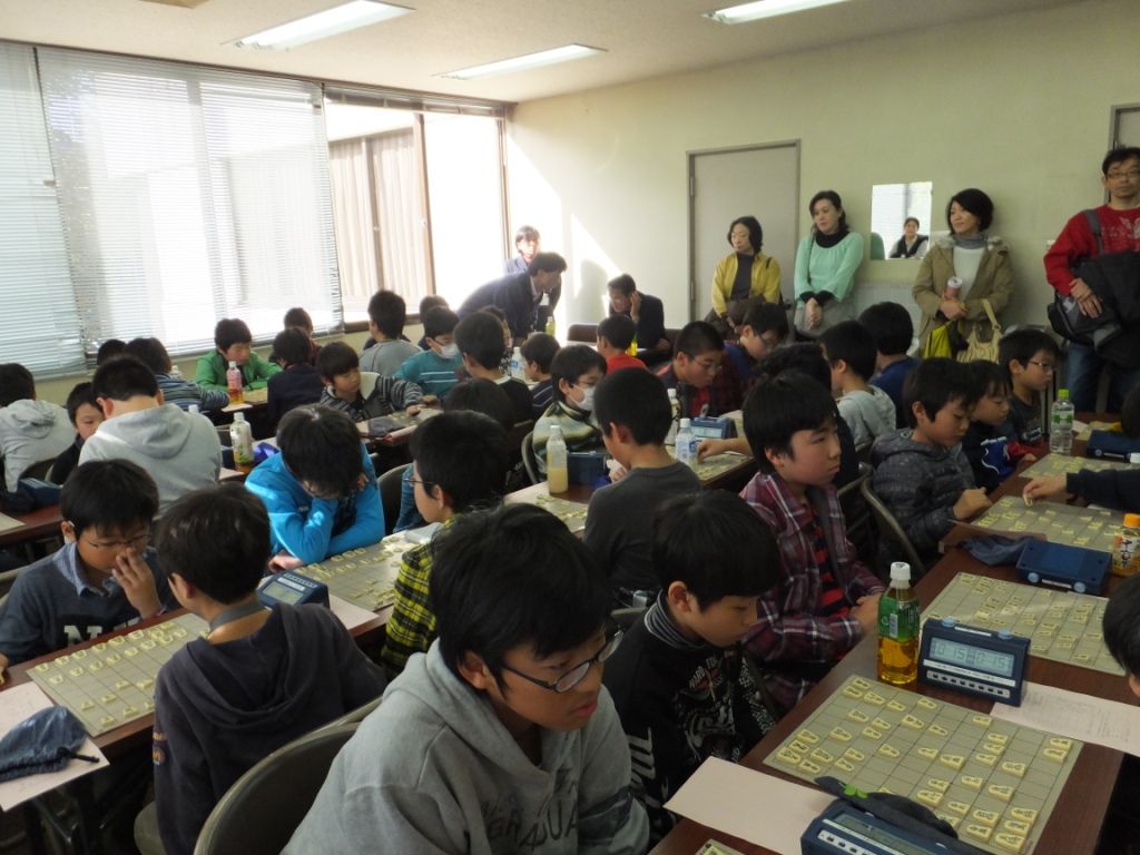 小学生の部は、昨年までは2敗失格にしていたとのことですが、「すぐに終わるとかわいそう」ということで、全員5局指せるように今年からしてくれたようです。