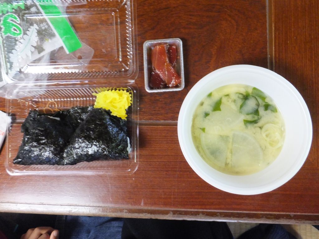 ひとりにつきおにぎりを3つと味噌汁、づけです。