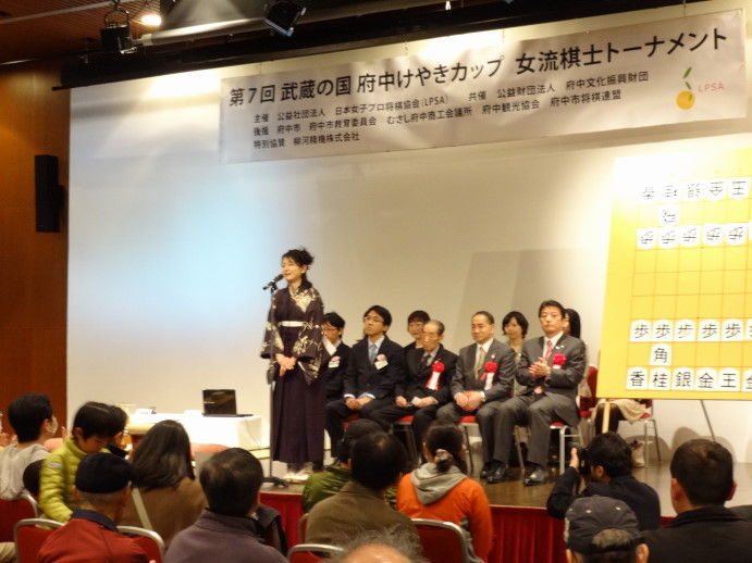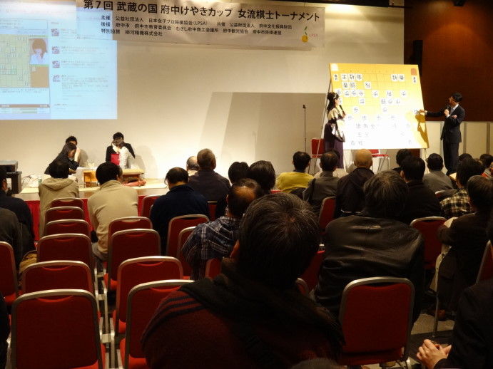 ステージ上では女流プロ棋士のトーナメント「けやきカップ」と大盤解説。