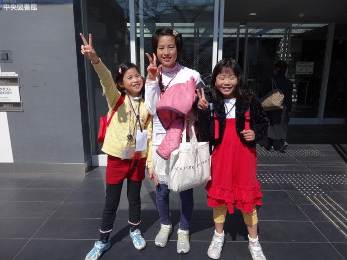 会場前で記念撮影。男子も撮ったけど、あまりノリ気でなかったようなので女子だけアップします。