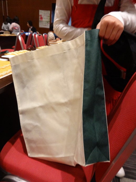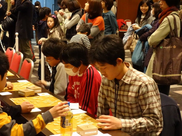 トーナメント終了後は自由対局。みんながんばってるなー、エライ!・・・と思ったら、たくさん対局して対戦カードがスタンプでいっぱいになると、この景品バッグがもらえるんですね(笑)。中にはボールペンやメモ帳が入っていました。行徳からの往復交通費が小学生600円ですが、それ以上分はありそう。スゴイ、なんて豪華な大会なんでしょう。