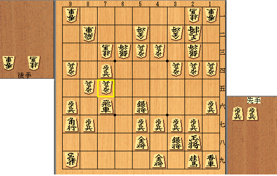 従い上図では▲7九飛と引く。△9八馬▲7五角と進んで、