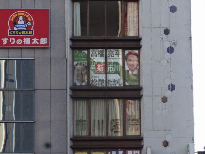 土曜午後は半日、内装職人でした(笑)。市川駅北口の高橋亮平事務所、巨大ポスター復活。「キレイにはがしておいてよかったね」など言いつつ。