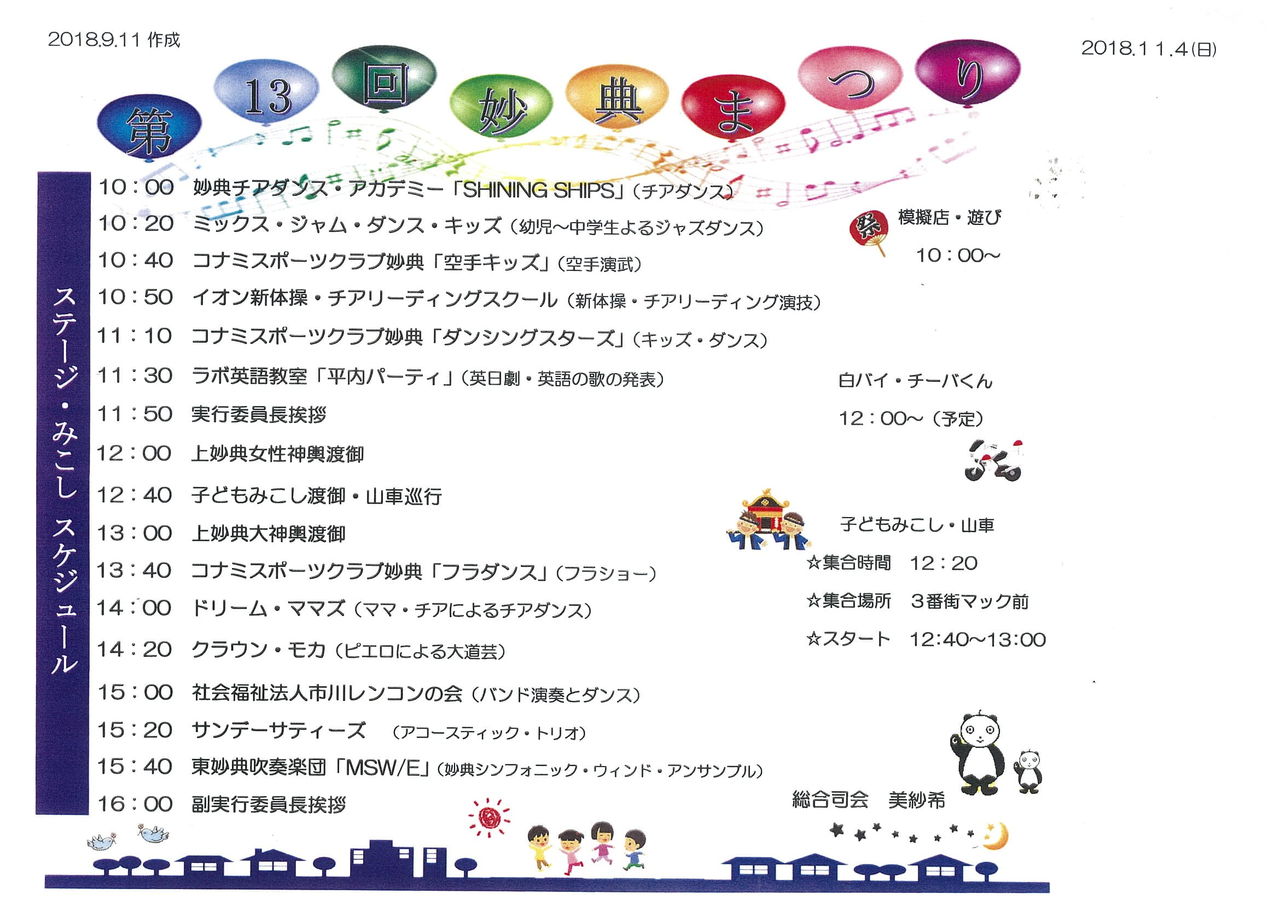 「ふーん、そういうの気にする人も居るんだな」くらいで流していただければと思います。今年は神輿が例年より多く出るので、念のため。新しく移り住んだ人々に妙典の歴史を知ってもらうことと、祭りの盛り上げが趣旨と理解してよいのではないでしょうか。