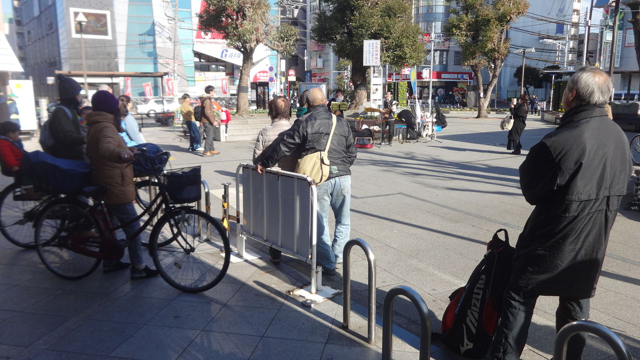 何年か前にマイセンライブによく通ってくださったご年配の女性もたまたま通りがかり暫く聴いてくださいました。マイセンライブは夜遅くなるので最近はご無理になっているのですが、そうかこの時間なら大丈夫なんだなというのがわかった。「ゴメンねぇ、知らなかったから薄着で来ちゃって。また来るわね」と言って去ってゆきました。マイセンのマスターに次はいつになりそうだとか警察の許可がとれたとか、逐一情報を伝えておくとよいかもしれない。