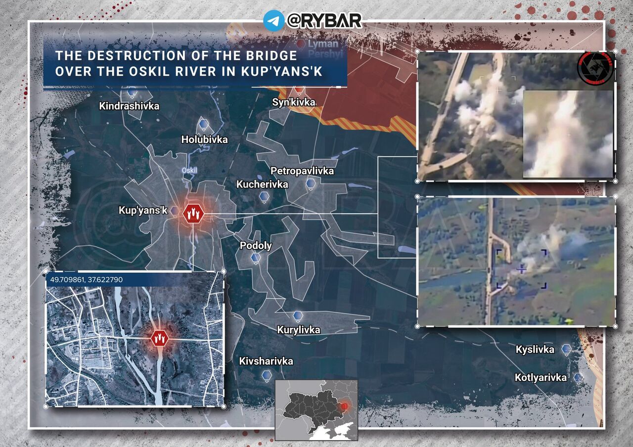 ミサイルは橋の南側に命中しましたが、映像を見ると北側ではすでに1車線が欠けています。その結果、この交差点を通じてクピャンスク近郊のグループに補給することは現在不可能です。