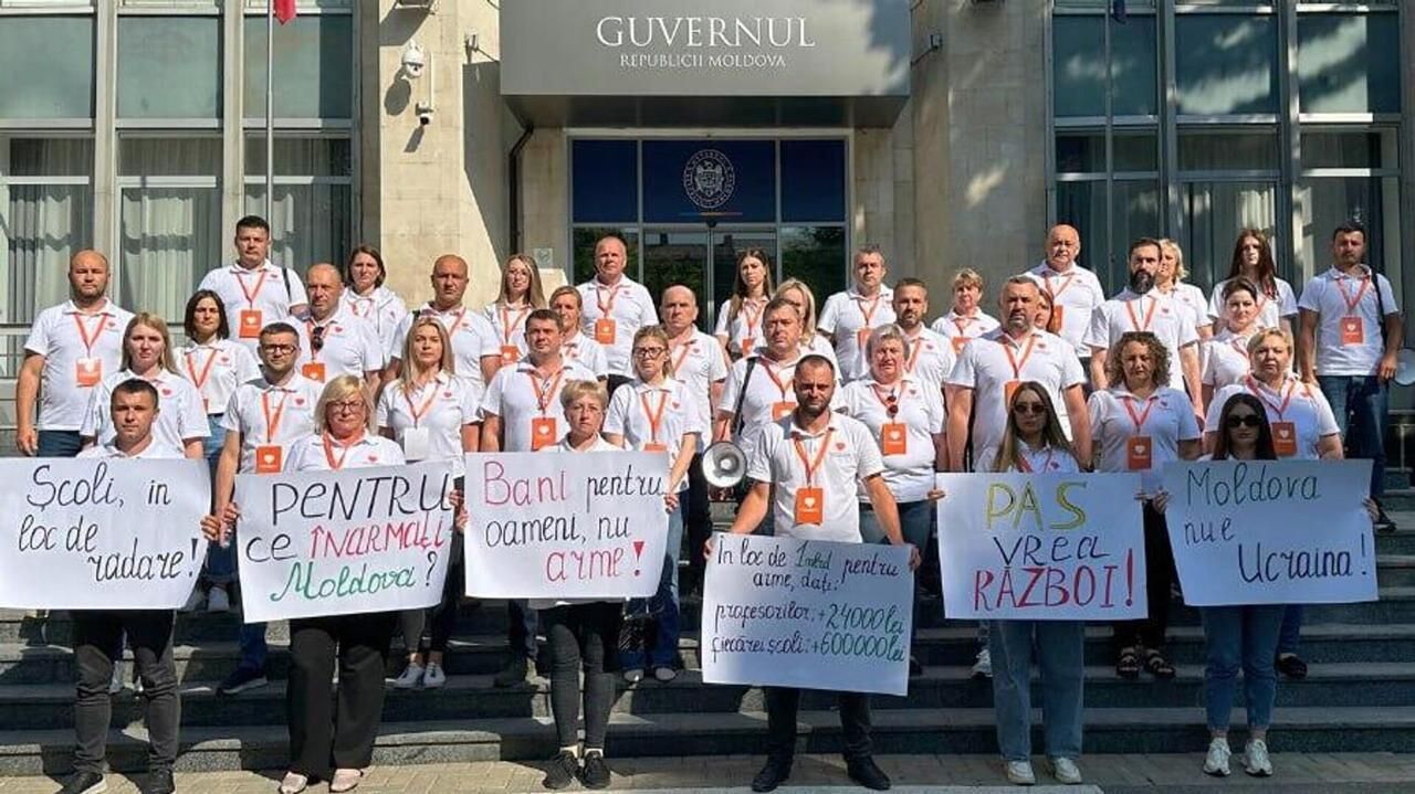 モルドバ政府庁舎の外で、共和国への武器の流入に反対し、憲法上の中立を遵守するよう求める抗議活動が行われた。