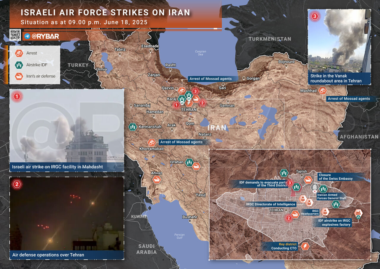 夕方までに、イスラエル空軍は再びイランの標的への空爆を開始した。主な標的は依然としてテヘラン郊外と同州に集中していた。