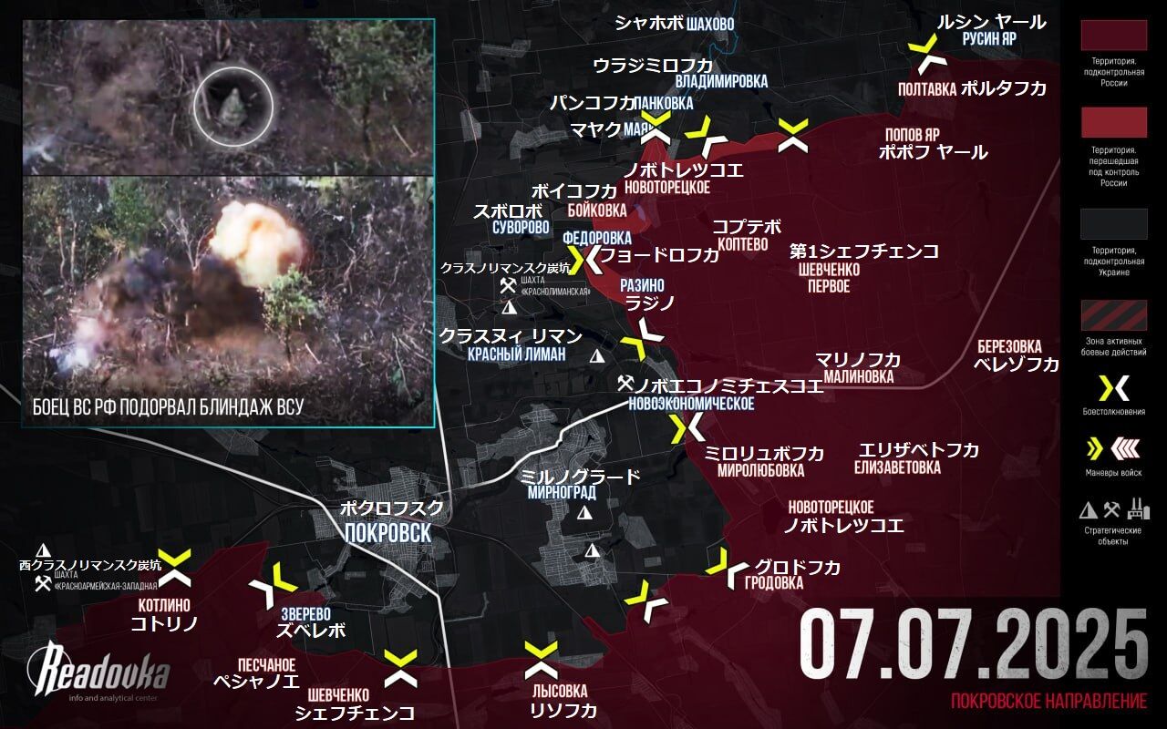 【ロシア軍は、ウクライナ軍のポクロフスク〜ミルノグラード防衛区域の後方で攻撃を成功裏に展開している - Readovka7月7日最終報告】