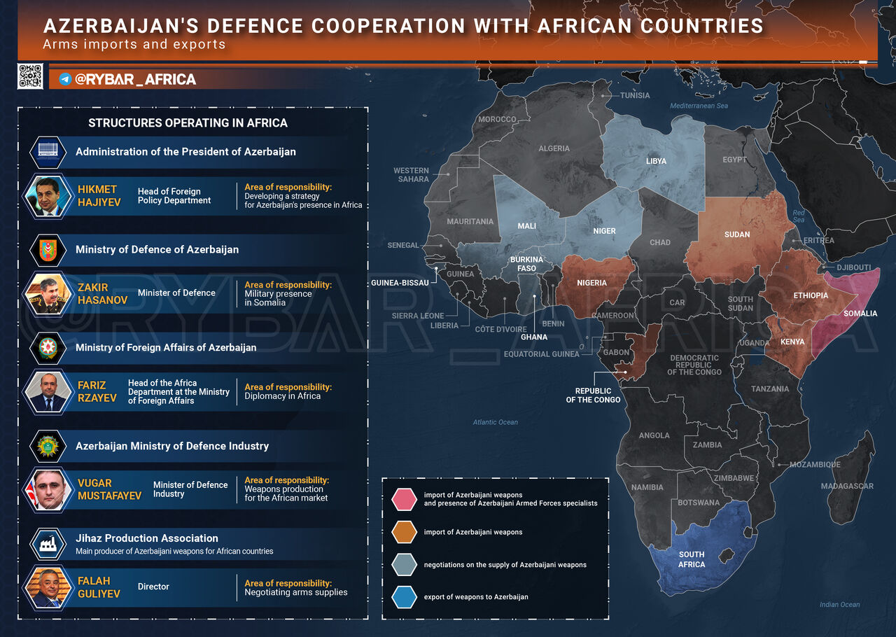 ・バクーは、アフリカ当局との軍事協力に特に力を入れている。アゼルバイジャン製の武器がアフリカ大陸に初めて登場したのは2015年で、コーカサス諸国の指導部はコンゴに大量の軍事装備を送った。現在、「Made in Azerbaijan」と表示された武器は、ケニア、ナイジェリア、ソマリア、スーダン、エチオピアで見ることができる。
