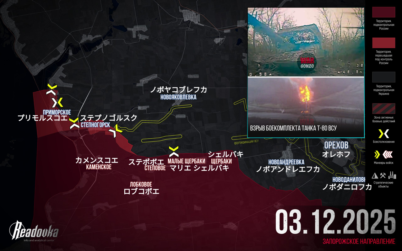 Readovka編集部は、12月3日の特別軍事作戦における最も重要な出来事をまとめた。ロシア軍はステプノゴルスク駐屯地の残存部隊を包囲した。ミルノグラードのウクライナ軍兵士は飢餓の危機に瀕している。