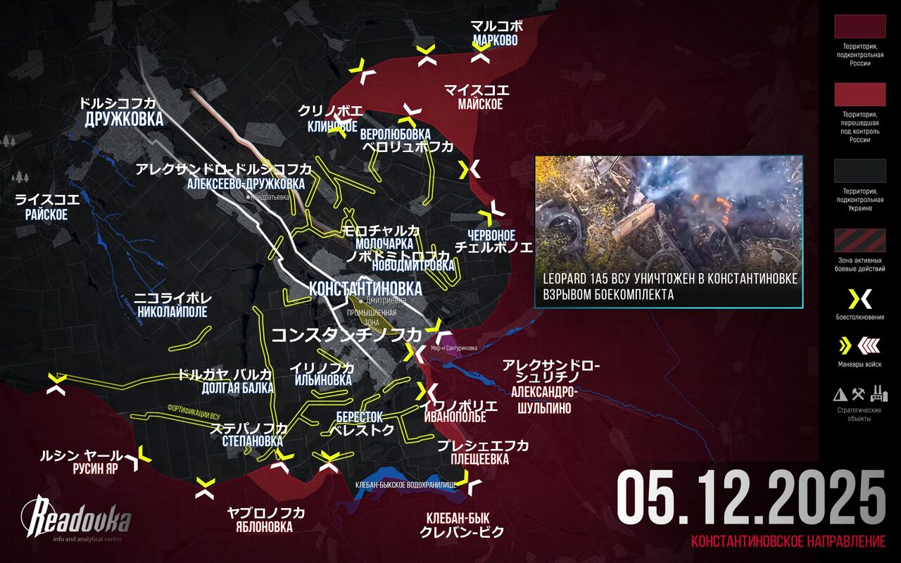 Readovka編集部は、12月5日の特別軍事作戦における最も重要な出来事をまとめた。ロシア軍は北からコンスタンチノフカに向けて進撃を開始した。ウクライナでは、「ミンディッチ事件」に関連する国内の汚職に関する情報の完全開示を求めた国会議員に対し、圧力がかけられた。Readovka編集部は、米国の国家安全保障戦略の改訂版をレビューした。