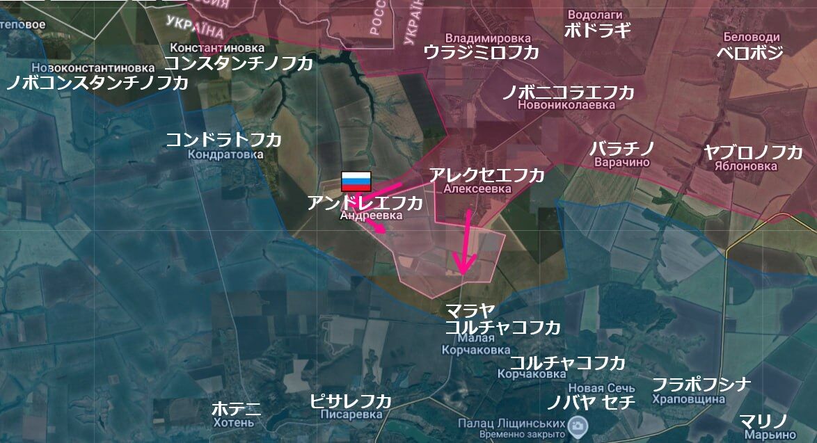 1 – スームィ州北部地区。ロシア軍第810海兵旅団の兵士がアンドレエフカを解放し、アレクセエフカ南方面に進軍した。