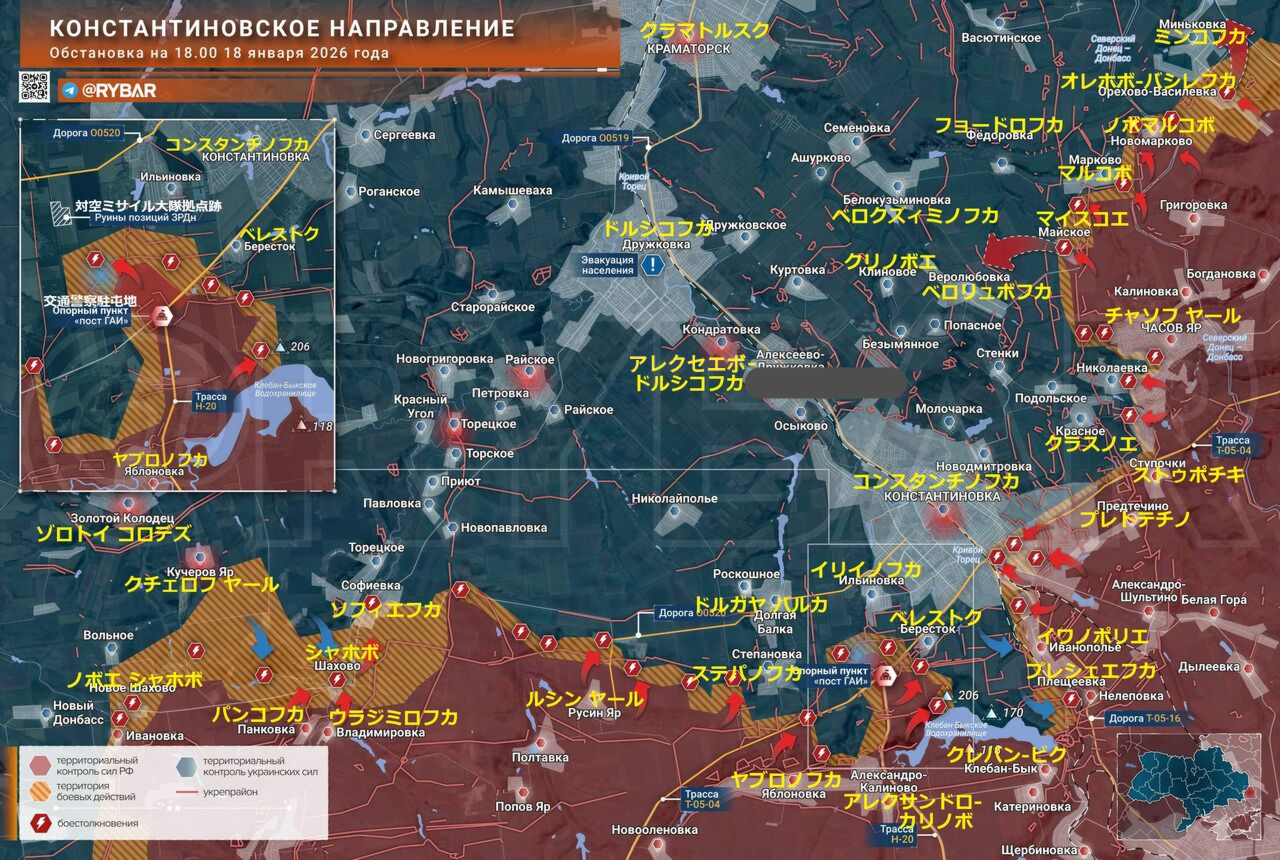 コンスタンチノフカ方面の1月18日の状況について、リバールの報告です。