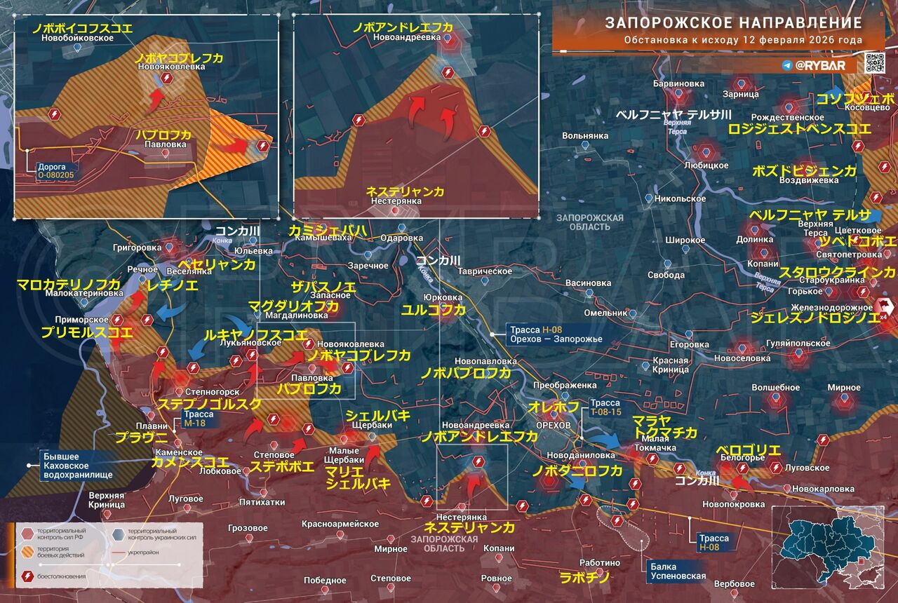 ザポリージャ方面の2月12日の状況について、リバールの報告です。