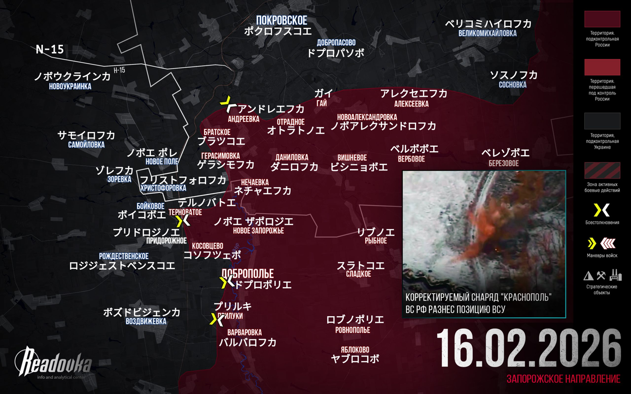 Readovka編集部は、特別軍事作戦における2月16日の最も重要な出来事をまとめた。ロシア軍はザポリージャ地区の戦線を安定化させた。敵は主要目標も副次目標も達成できなかった。作戦失敗の「スケープゴートを特定する」ため、ウクライナでは情報戦が始まった。ウクライナのリソヴィイ教育大臣は、ロシア語を話すウクライナ国民に対し、本格的な戦闘の苦難と喪失を自らの言語で認識するよう呼びかけた。